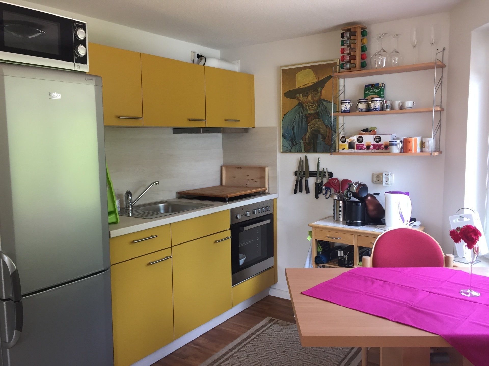 Die Küche ist mit folgenden Elektrogeräten ausgestattet: 1 Kaffeemaschine zum Aufbrühen und 1 Dolce Gusto Kapselmaschine, Wasserkocher, Stabmixer, Mikrowelle, Toaster, Herd mit Backofen, Kühlschrank mit Gefrierfach.