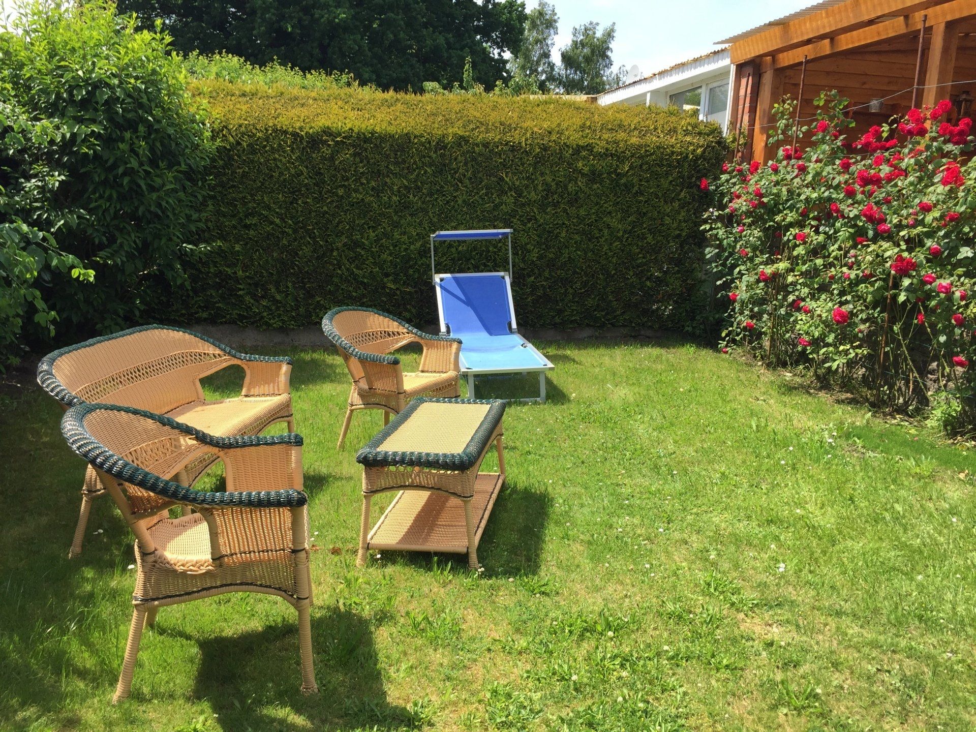 Das Häuschen verfügt über 1 Schlafzimmer mit Doppelbett und TV, 1 Wohnzimmer mit kleiner, ausziehbarer Couch für evtl. ein Kind, und ebenfalls Sat-TV, vollausgestatteter Küche, Bad mit Dusche und WC, Haarföhn, Terrassenmöbel mit Grill, 2 Gartenliegen.